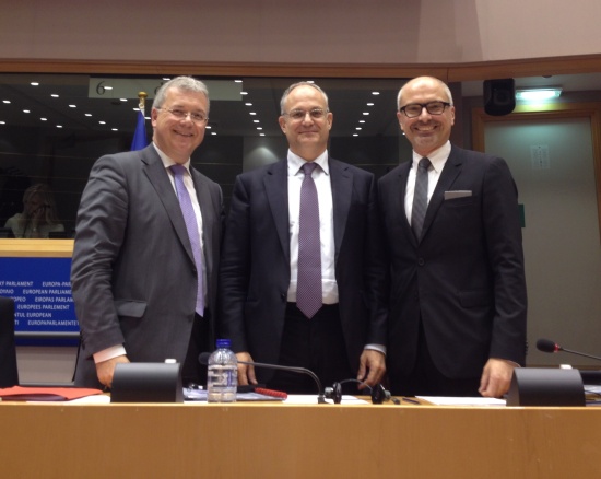 Peter Simon, stv. Vorsitzender, Roberto Gualtieri, Ausschussvorsitzender, Markus Ferber, stv.Vorsitzender (v.r.n.l.)