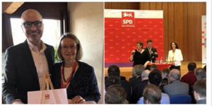 Treffen mit Judith Dongus, FES-Stipendiatin und Schwester des Vorsitzenden des OV Neckargartach-Frankenbach Jakob Dongus, die derzeit ein Schuman Trainee im Ausschuss für Regionalentwicklung absolviert