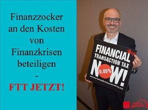 Die 10 „willigen“ Finanzminister der EURO-Gruppe haben heute bei ihrem letzten Treffen vor der Sommerpause wieder einmal die Finanztransaktionssteuer auf die Agenda gesetzt. Seit Jahren wird bereits verhandelt, jetzt muss die Gerechtigkeitssteuer endlich Realität werden. Damit würden die Verursacher der Finanzkrise endlich an den Kosten beteiligt, Spekulationen eingedämmt und für den EU-Haushalt würde sich eine neue Einnahmequelle ergeben. Also Herr Schäuble: Tatsachen schaffen statt nur warme Worte - steht zudem auch im Koalitionsvertrag!