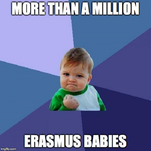 = das Austauschprogramm für Studium, Berufsbildung und Freiwilligendienst im Ausland = mehr als 9 Millionen TeilnehmerInnen = Generation Erasmus (1 Million Erasmus-Babys 🙂 ) Herzlichen Glückwunsch! Und was ist deine/eure Erasmusgeschichte?