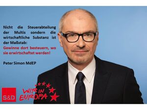 "Durch die Steuervermeidung internationaler Konzerne gehen den Mitgliedstaaten der EU jedes Jahr zwischen 50 und 70 Milliarden Euro verloren", unterstreicht der baden-württembergische SPD-Europaabgeordnete Peter SIMON, Sprecher der S&D-Fraktion im TAXE-Ausschuss gegen Steuervermeidung von multinationalen Unternehmen. "Diese Gewinnverlagerung führt zudem dazu, dass lokale Unternehmen im EU-Durchschnitt fast ein Drittel mehr Steuern zahlen müssen als multinationale Unternehmen. Es ist nicht hinnehmbar, dass multinationale Unternehmen keinen angemessenen Beitrag zum Steueraufkommen unserer Staaten leisten. Gewinne sollen dort besteuert werden, wo sie erwirtschaftet werden. Nicht die Steuerabteilungen oder Steuerberatungsfirmen der Multis, sondern die wirtschaftliche Substanz sollte darüber bestimmen, wo die Unternehmen ihre Steuern zahlen."