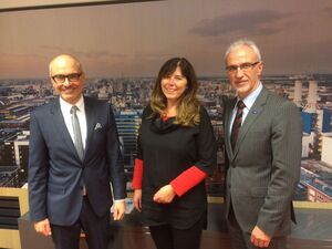 Mit BASF-Vorstand Dr. Harald Schwager im Brüsseler Informationsbüro des Unternehmens gemeinsam mit meiner Ludwigshafener Kollegin Jutta Steinruck