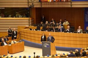 bei Festakt vor dem Konzert des Sinfonieorchesters der Garde Républicaine im Mannheimer Rosengarten anlässlich des heutigen Europatages