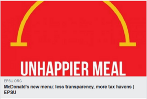 Ich liebe es Steuern zu vermeiden! Laut einer aktuellen Studie amerikanischer und europäischer Gewerkschaften wählt die Fastfoodkette dafür bewusst (intransparente) Steueroasen als Firmensitze. Das zeigt: Es führt kein Weg vorbei - Multis müssen öffentlich machen, wo sie welche Steuern zahlen!
